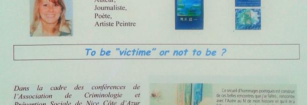 Dans la cadre des conférences de l’Association de Criminologie et Prévention Sociale de Nice Côte d’Azur Corse, Carole MAIRE, Auteure Poète et Psychanalyste, interviendra sur le theme To be “victime ” or not to be